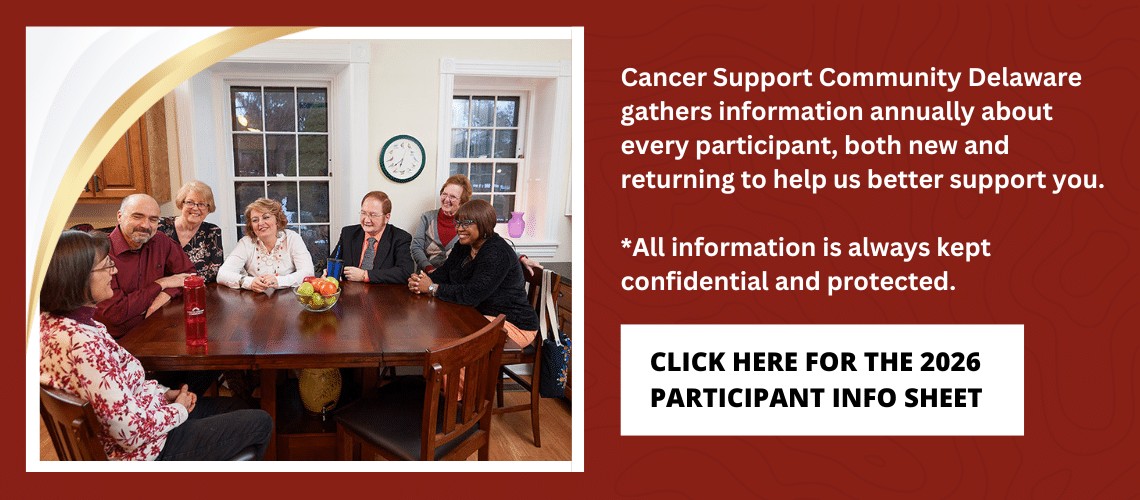 Cancer Support Community Delaware has spent the past 29 years making our mission our tradition, by striving to ensure that all people impacted by cancer are empowered by knowledge, strengthened by action, and sustained by community. As a statewide nonprofit organization our support groups and programs are professionally led and are provided at no cost to help participants and caregivers cope with the emotional and life changing aspects of cancer.